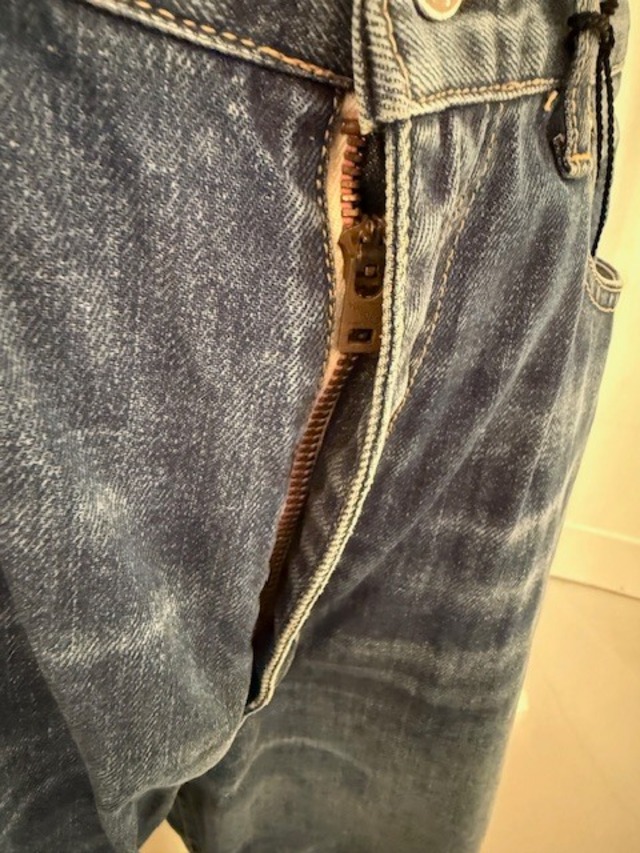 定番の12オンスセルビッチデニムを使用し、5ポケット仕様のストレートレッグで仕上げた少しユルめなラインで履けるパンツです。
