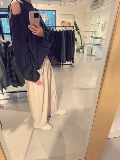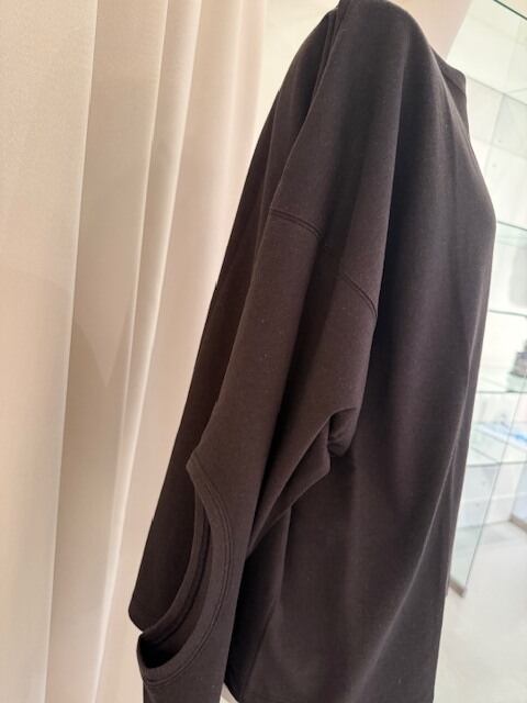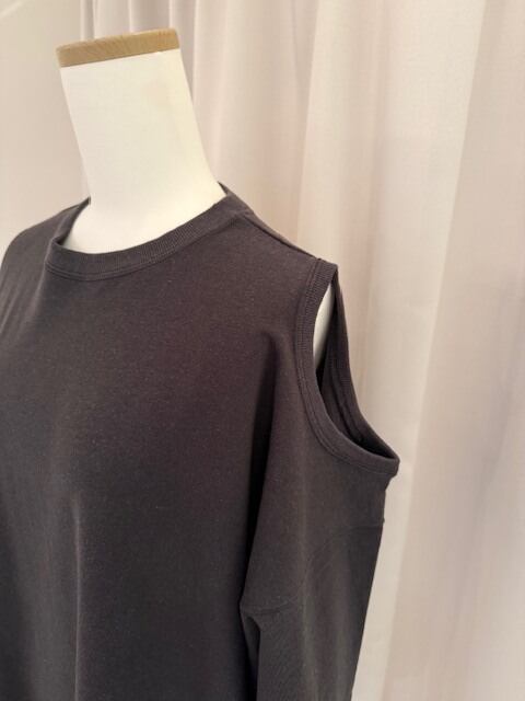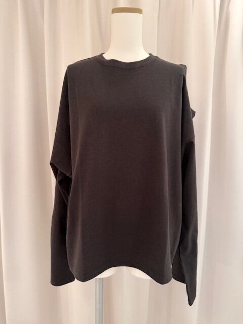 左肩と右腕内側にHoleデザインを入れたゆったりサイズの長袖Topsです。