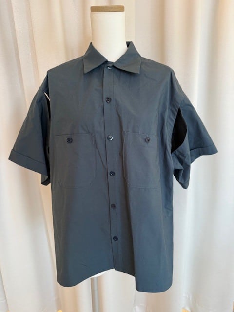 袖付け根部分前後にカッティングを入れたコットンリネンシャツです! 一番上のボタンのみスナップボタンになっております。大き過ぎずタイトでもないサイズ感で、張り感のある生地で仕上げたスタイリングしやすいアイテムです。 コットン100% サイズ(平置き採寸):袖丈(襟ぐりから袖まで)40.5㎝、身幅59㎝、着丈66㎝